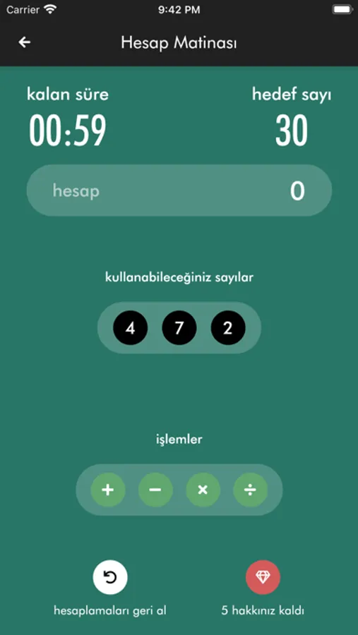 Yalnızca size verilen sayıları ve dört işlem kullanılarak hedef sayıya ulaşmanız gerekiyor.
