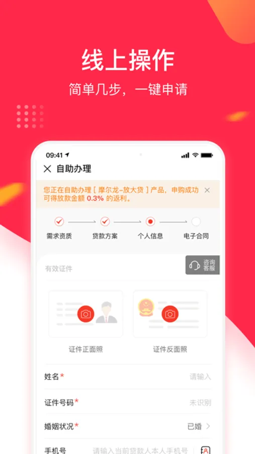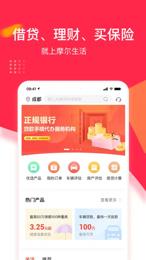 摩尔生活APP使泛金融服务数字化升级,为客户提供泛金融产品的信息搜索、浏览功能,为银行等正规持牌金融机构提供产品分享平台,为广大泛金融从业及需求人员提供交流平台,在营销推广工具、客户解决方案、费用结算等经营需求上提供支持。