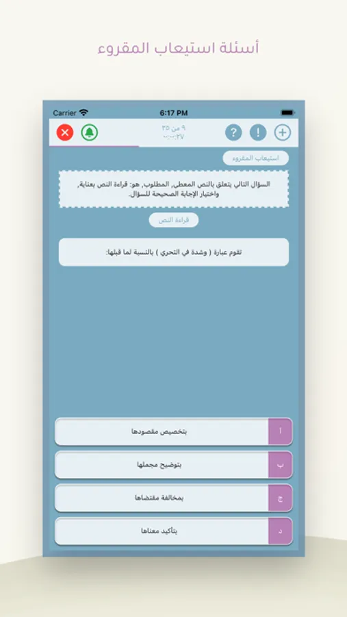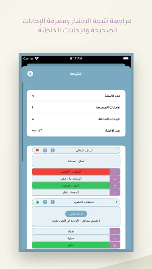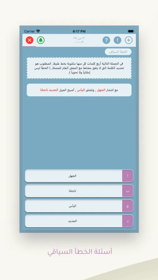 ويتم إضافة أسئلة جديدة كل فترة والتطبيق يقوم بالتحديث بشكل تلقائي في بداية التشغيل. أو يدويا من الإعدادات.