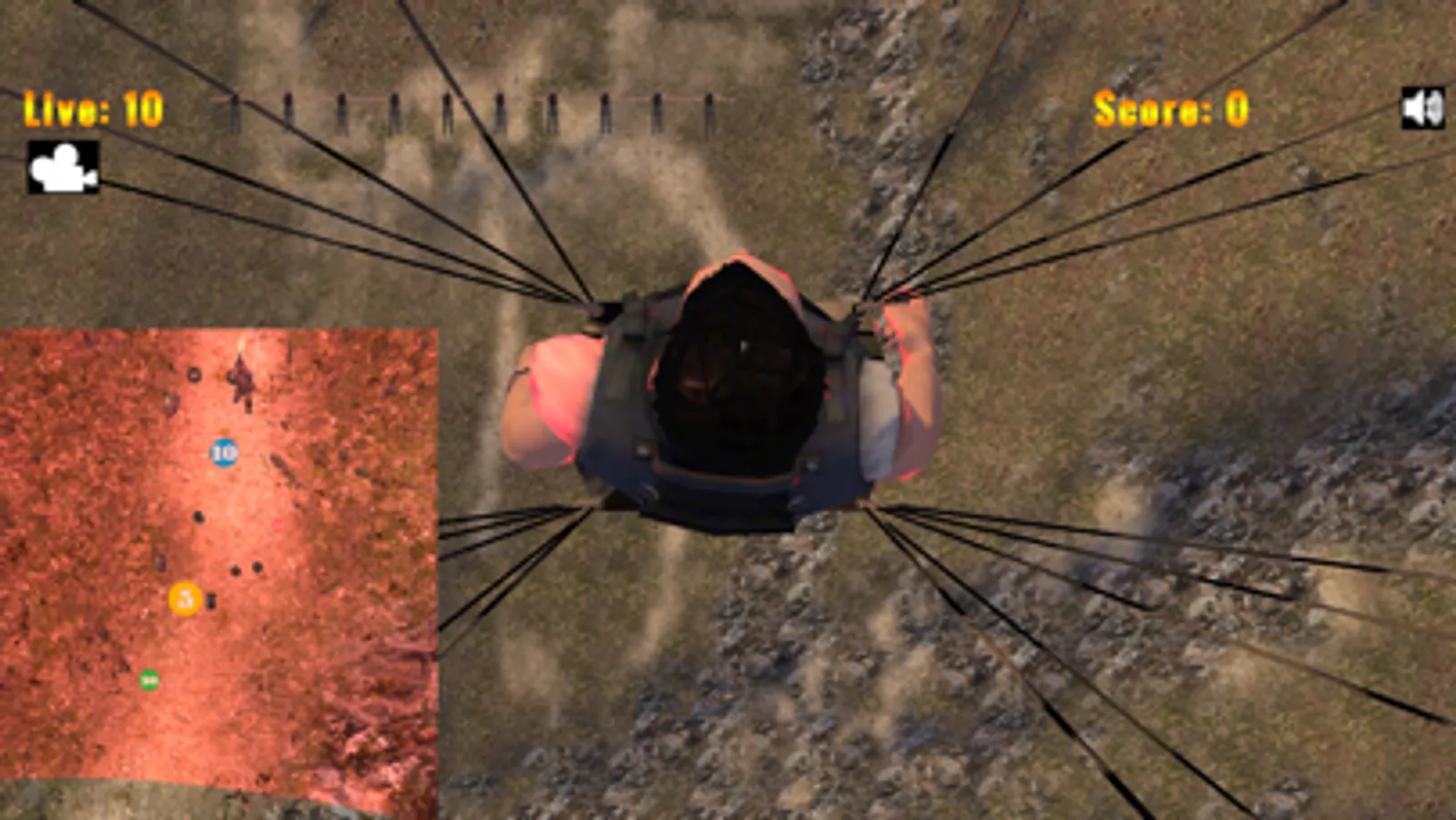 Land on the target areas without being hit by the anti-aircraft gunner!