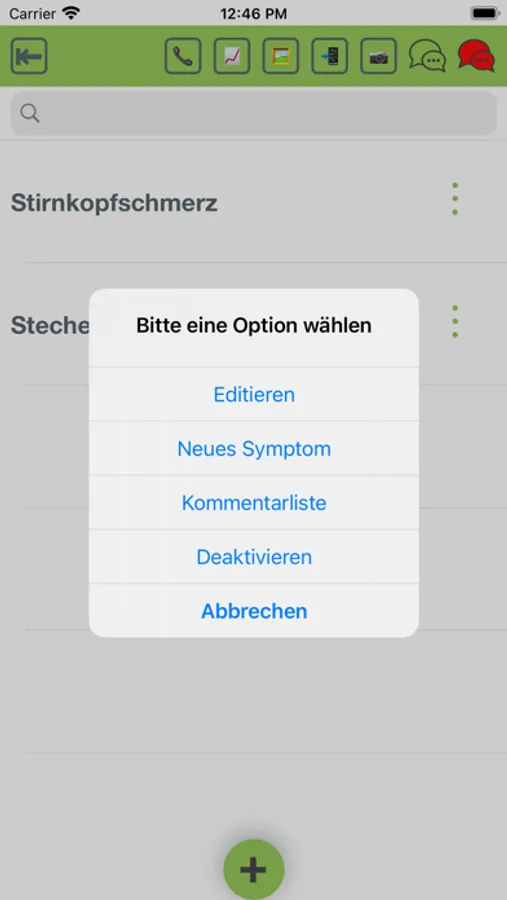 Hinterlegen Sie für Ihren Patienten einzelne Symptome. Die Patienten können die Symptomstärke über die Patienten-App bewerten.