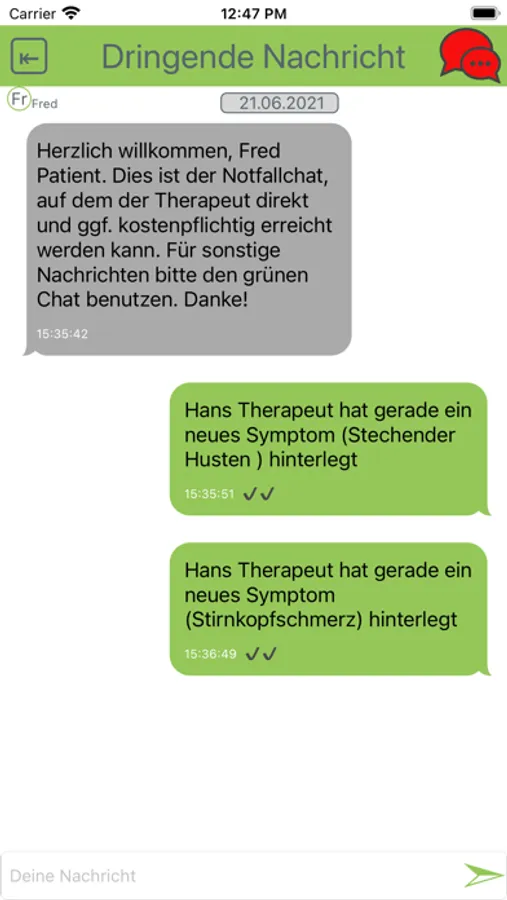 Oft ist es hilfreich, schnell auf akute Anfragen zu reagieren. Mit der Therapeuten-App können Sie genau dies tun und sichern so, dass der Patient bereits Symptomstärken eingeben kann, bevor Sie am PC in der Praxis das Patientenverwaltungsprogramm vor sich haben.