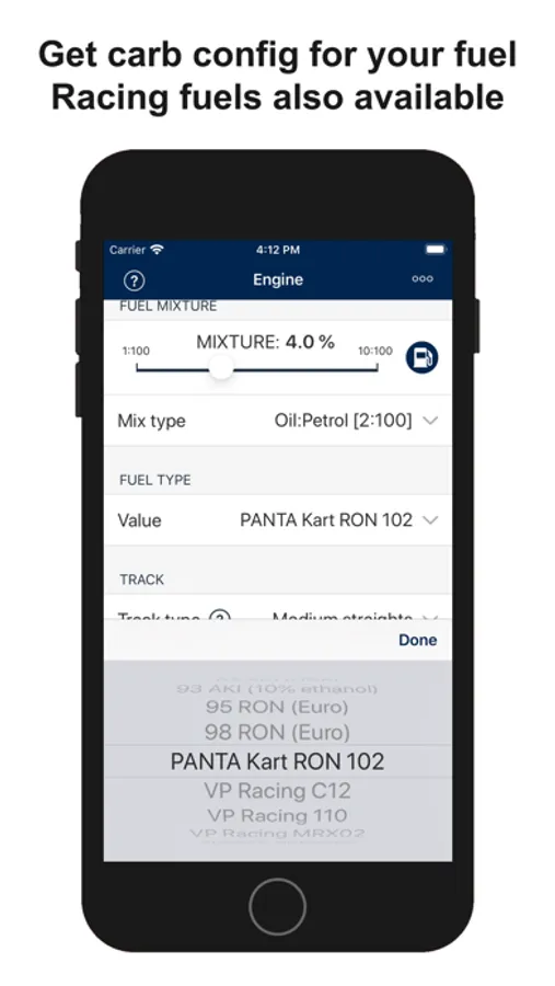 • Mix wizard to get the perfect mix ratio (fuel calculator)
