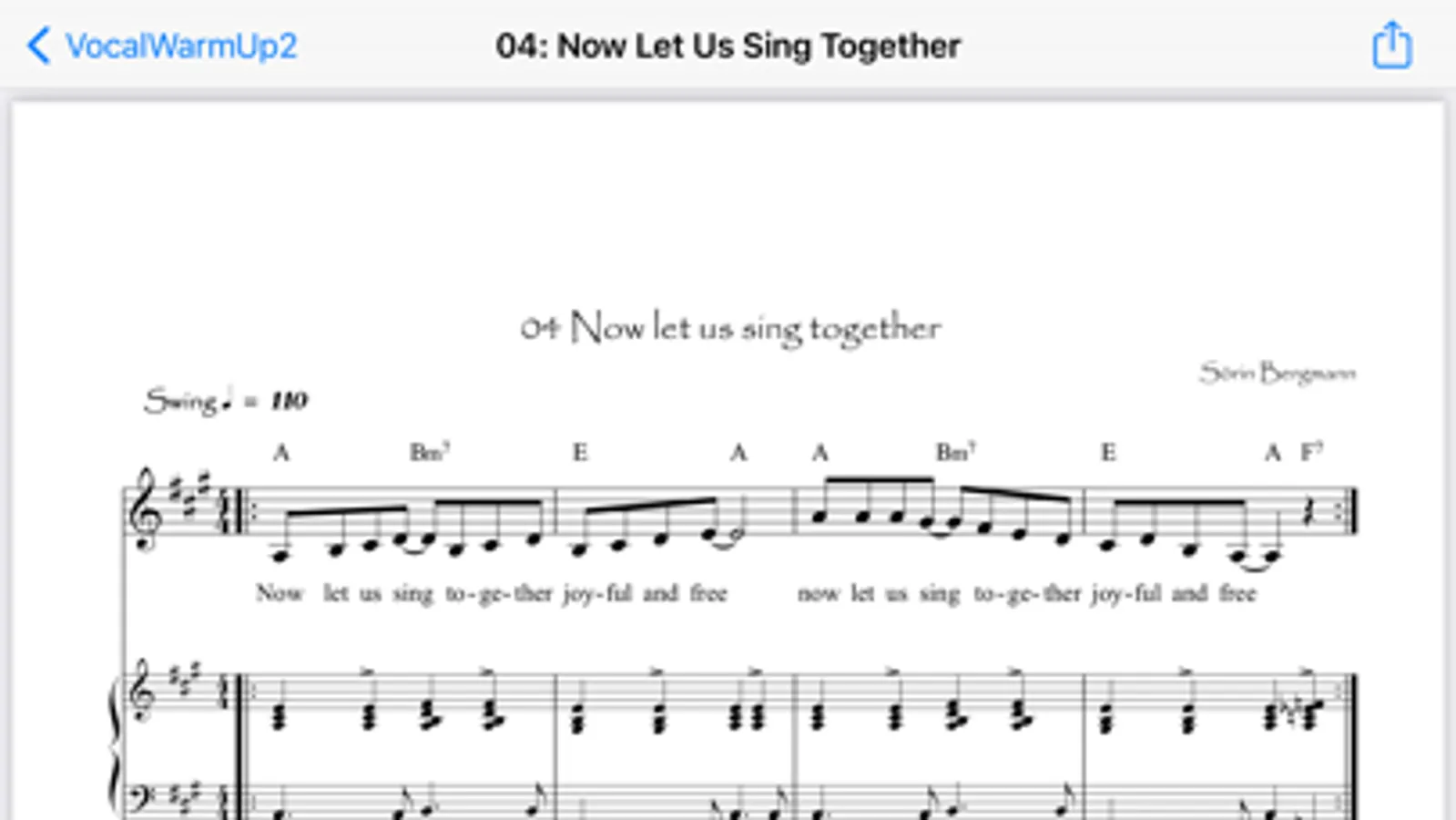 Starting with relaxation the journey leads via breathing techniques and vowel equalisation to groovy exercises with harmony and vocal highs and lows.