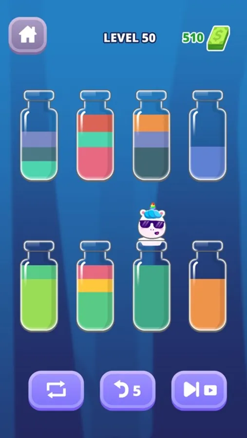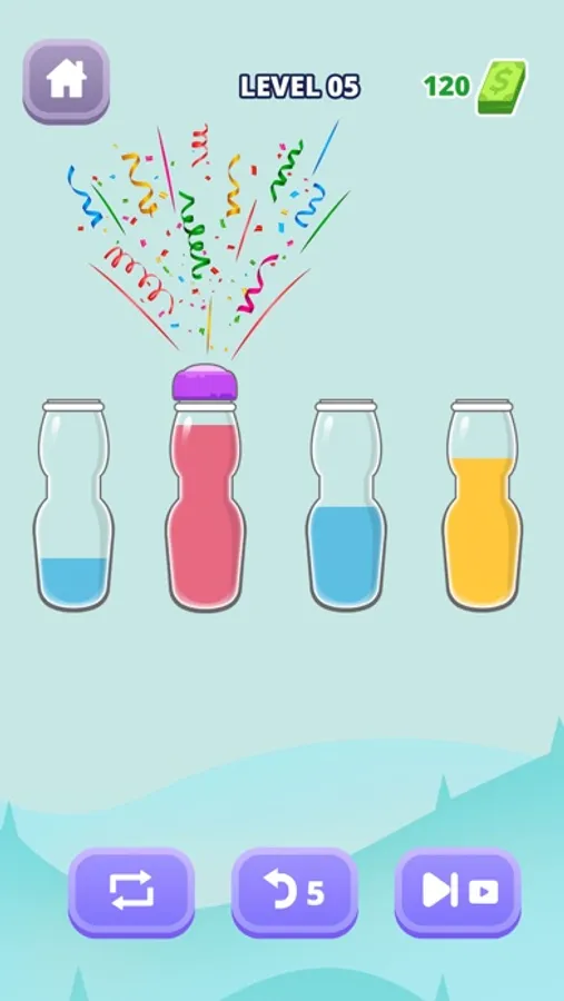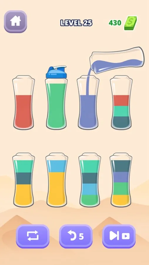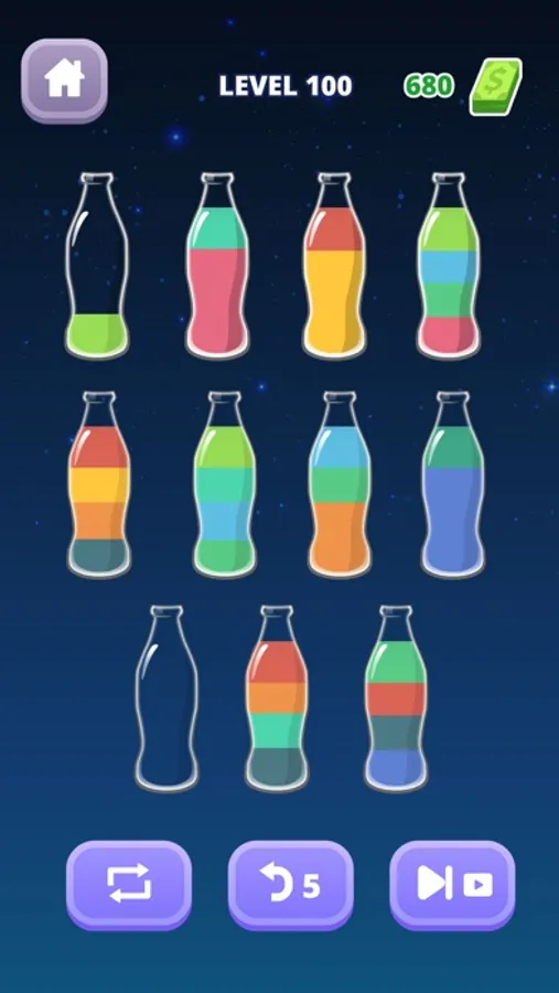 Try to sort it and pour colored water in the bottless until all colors are in the same bottle. A relaxing and challenging game to train your brain