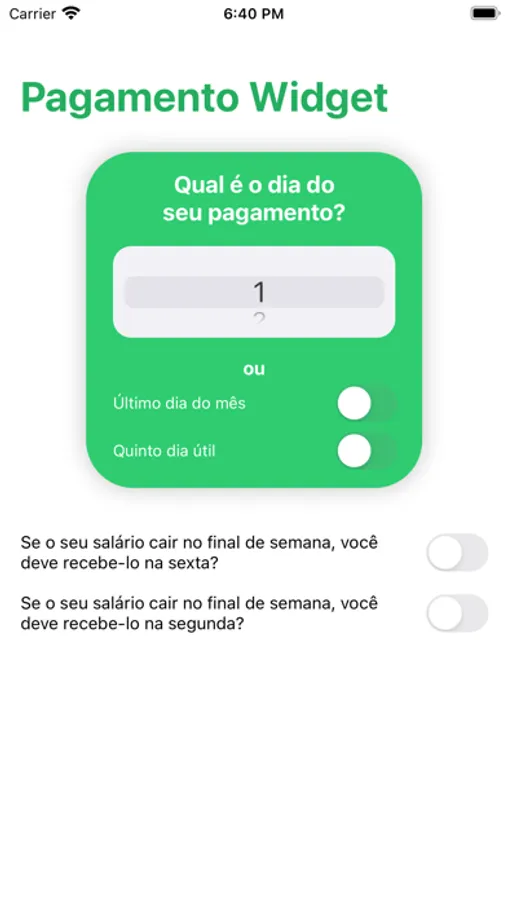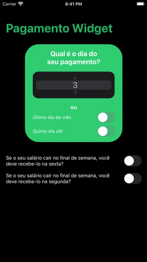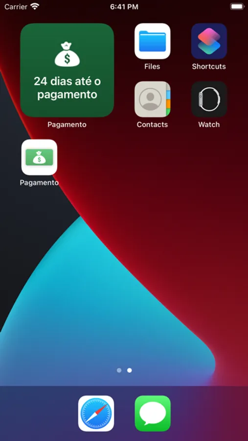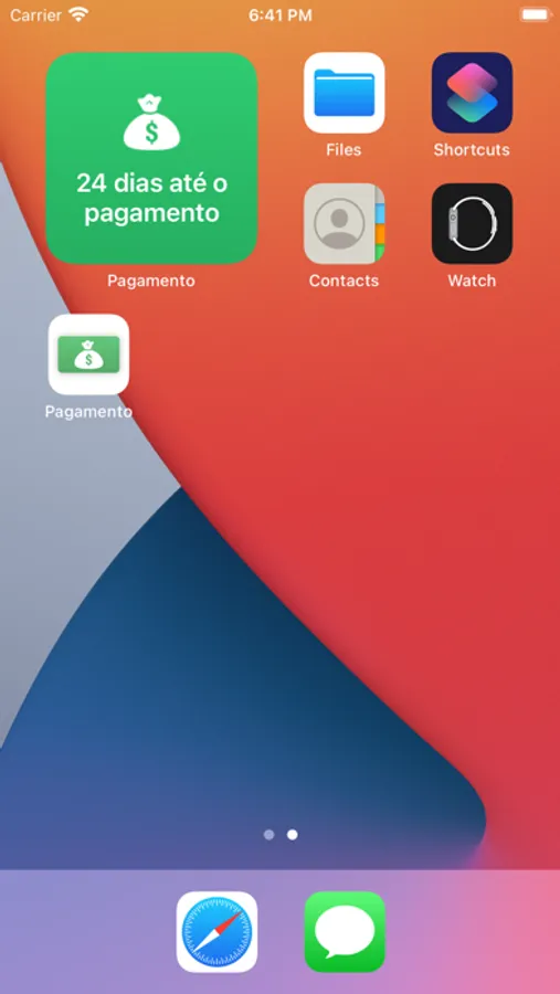 Com o Pagamento Widget você tem acesso rápido a quantos dias faltam para cair seu salário.
