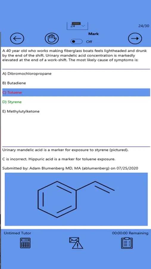 ToxRunner has features similar to other digital question banks such as a database of medical questions and ability to track performance over time. There are several hundred questions in the database, and users can submit questions for review via the "add question" feature. All submitted questions are reviewed prior to becoming available to all users.