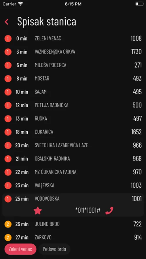 - omiljene linije - na početnom ekranu moguće je snimiti omiljene ili najčešće korišćene linije radi kasnijeg lakšeg pristupa