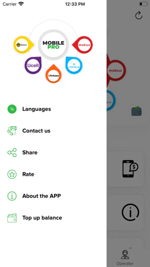 Mobile Pro ilovasi orqali barcha turdagi mobil operatorlar xizmatlarini boshqarish imkoniga ega bo'ling. Bosh menyu orqali o'zingizga kerakli bo'lgan mobil operatorlarini tanlang va sizga barcha xizmatlarni boshqarish imkonini beradi. Internet paketlar, Tariflar haqida ma'lumotlar olish, Daqiqalar, SMS paketlar va boshqa turdagi xizmatlarni boshqarish imkonini beradi. Bulardan tashari raqamni yashirish yoki kutish xizmatini yoqish imkoniga ega bo'lasiz va barcha pullik xizmatlarni yoqish imkoniga ega bo'lasiz. Endi sizga USSD kodlarni eslab qolishga xojat yo'q, mobil ilova orqali siz barcha USSD xizmatlarini bilishingiz mumkin. Sizning qulayliginigiz uchun birgina tugma orqali balansingizni yoki tarif qoldiqlarini tekshirish yoki Call markaz bilan bog'lanish imkoniga ega bo'lasiz!