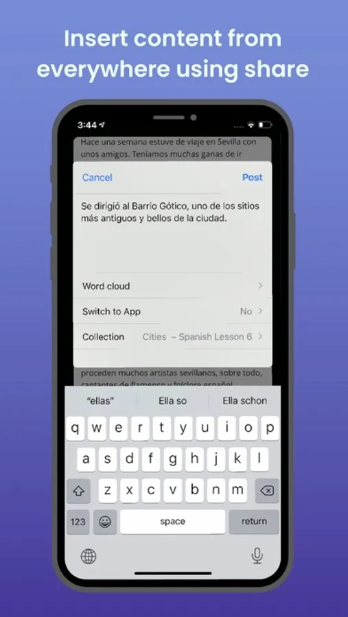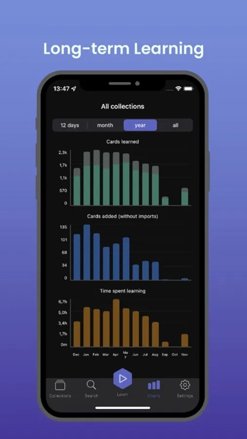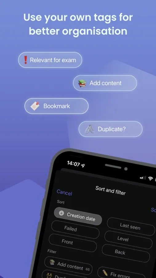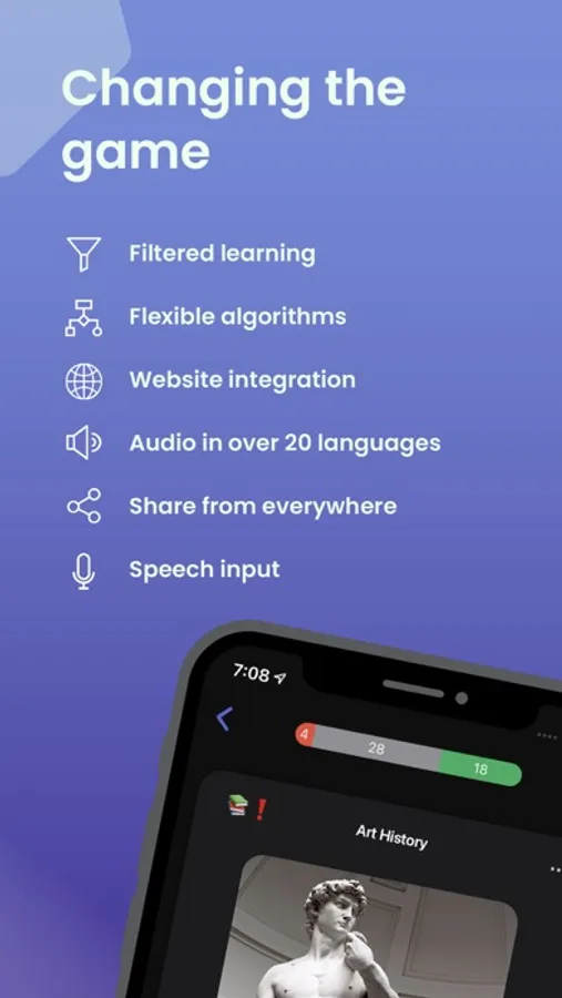 Learn flashcards with flexible algorithms, add content from any site or app. Hear and speak in all iOS supported languages and search with powerful filters in your cards.