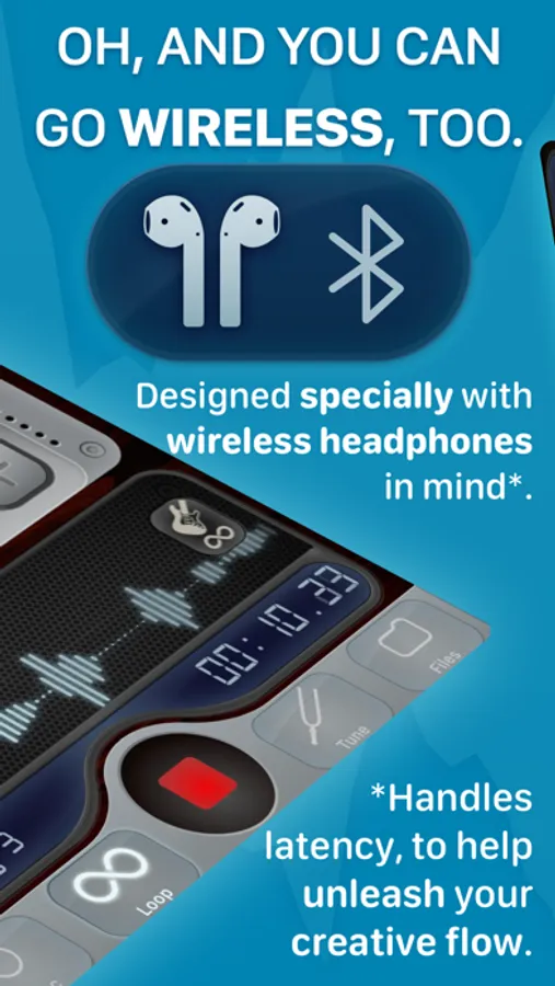 • Virtual Lag Removal™ - Even though BlueTooth audio has inherent lag, Pro Looper removes it virtually so you can start Jamming right away, in perfect time & immediately after recording your loop.
