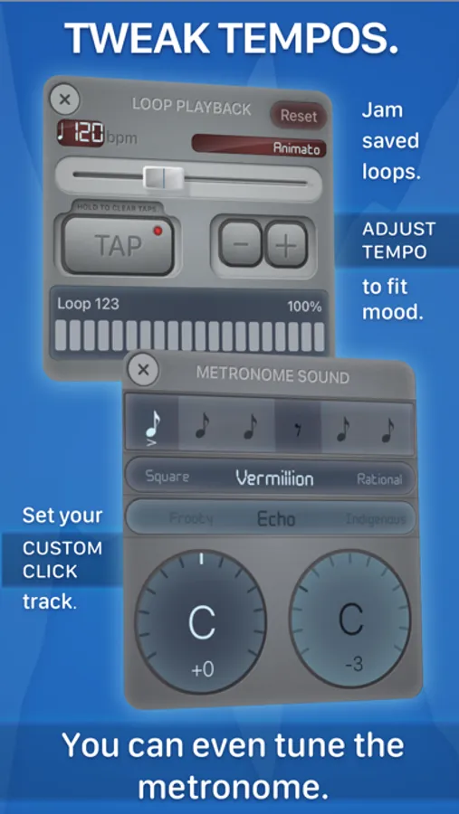 • Speed Up/Slow Down Loops by tapping tempo - Change the tempo of your loops to match the current mood