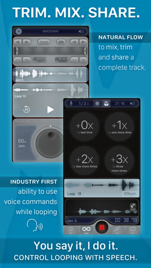 • Voice Controls - Start looping and control how many loops to go by saying phrases like "start looping" or "one more time"