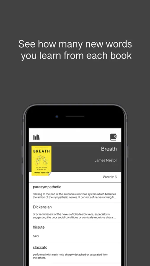 Use ReadSource to search for the definitions of the new words you come across while reading. You'll be able to see the progress of how many new words you learn from each book!