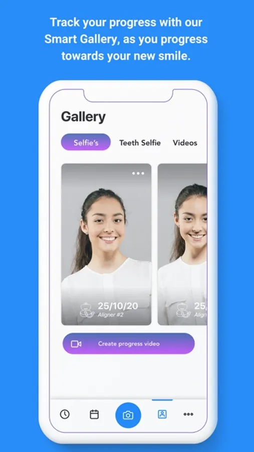 With our smart gallery, you track your selfies and teeth selfies, allowing you to see progress of your treatment.