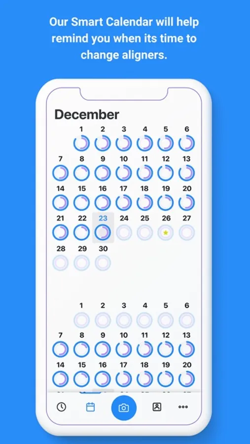 Our smart calendar keeps a log of everyday of your aligner usage, and keeps a record of daily selfies and teeth selfies.