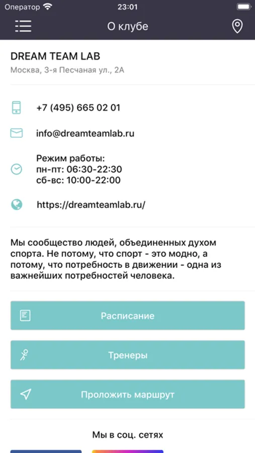 Приложение для клиентов спортивного клуба DREAM TEAM LAB