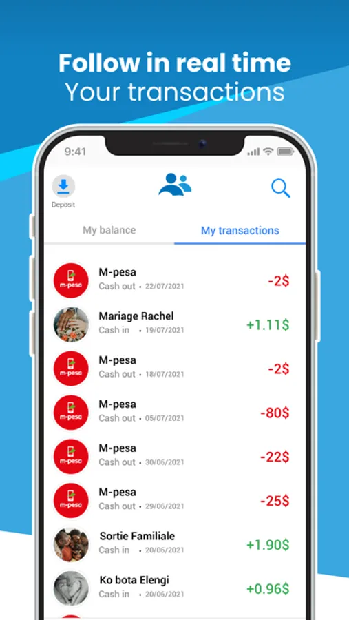 To cash out money you received from funding pots, simply make a deposit to your M-pesa account.