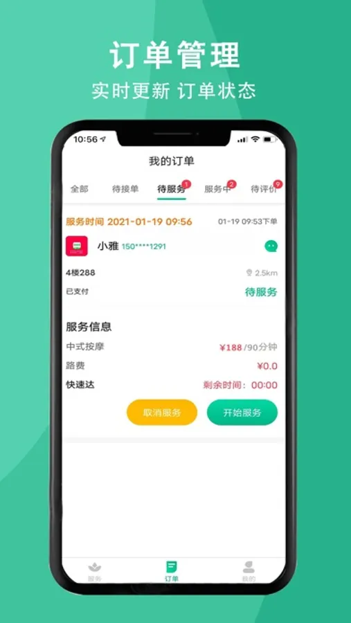 在您接单后我们的应用会持续使用GPS定位服务,以便下单客户查看您到服务地点的距离。切换至后台使用时,仍会继续。相比其他操作会消耗更多的电量,影响电池的续航时间。