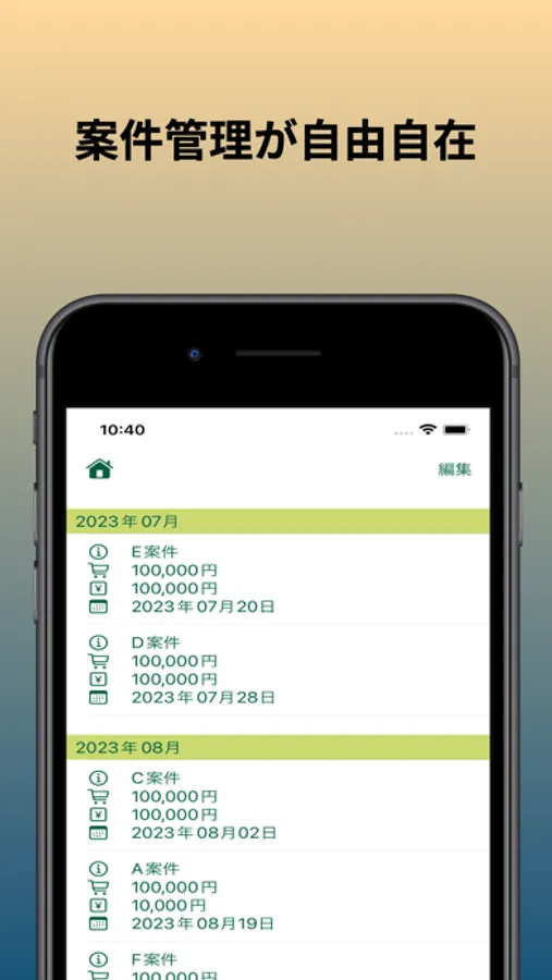 入力した受注日の順に並んだ案件一覧を今一度見てください。