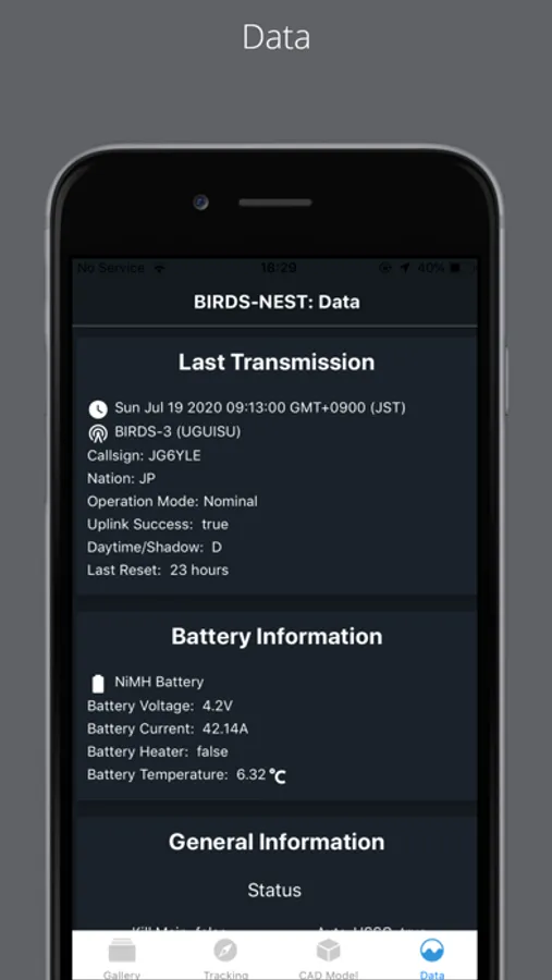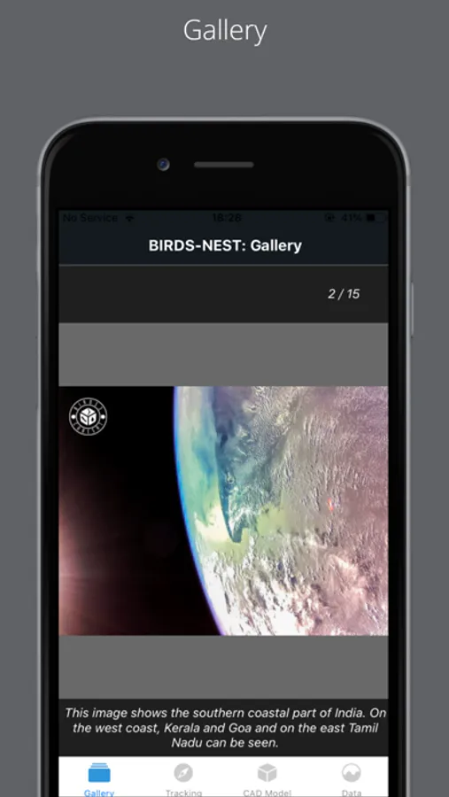 The application will monitor the position of the BIRDS satellites and also allow the user to view the CAD file, the recorded data, and a gallery of images captured by the satellite.