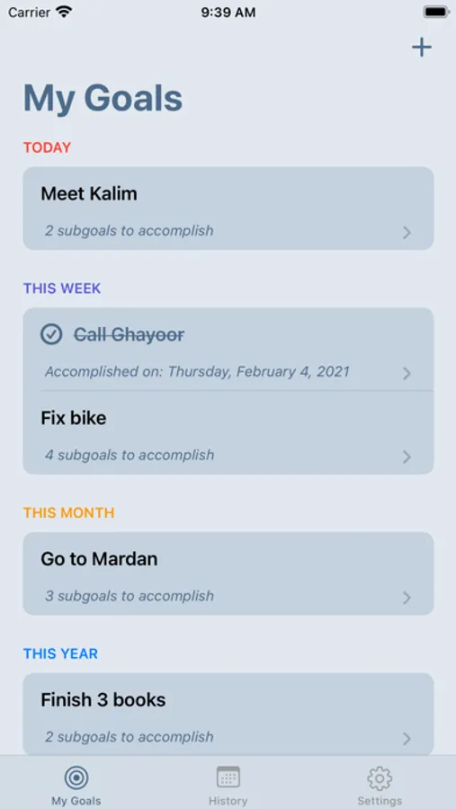 1. Create Daily, Weekly, Monthly, Yearly and Lifetime Goals - all organised in their corresponding categories.