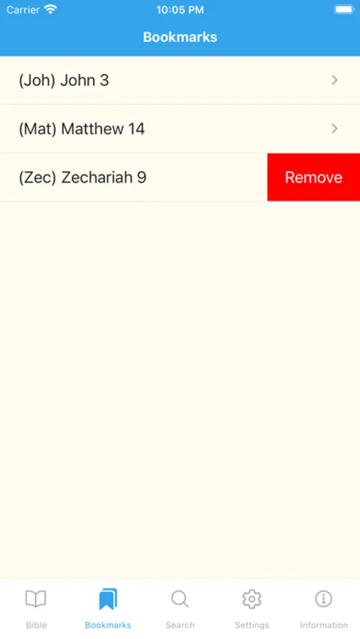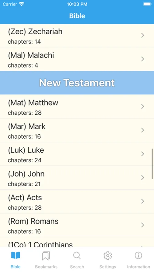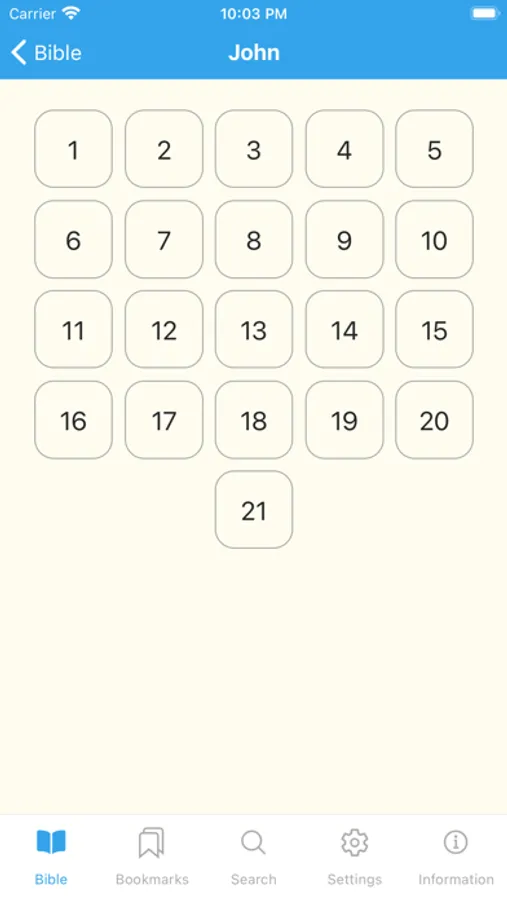 Application built for iPhone / iPad / iPod Touch that contains King James Version Bible with ability to bookmark particular chapters of the Bible and later come back to them.