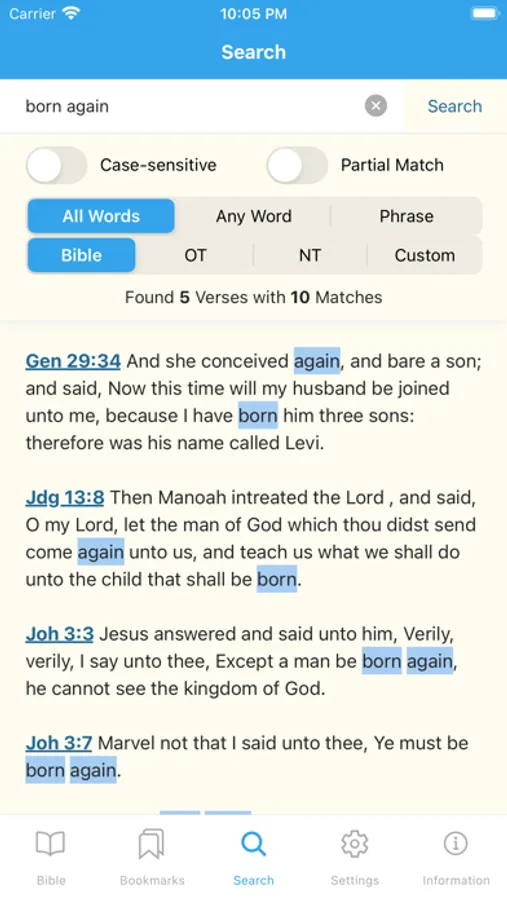 Moreover, KJV Bible will allow you to easily highlight particular verses or multiple verses at the same time with options of multiple different highlighters to choose from.