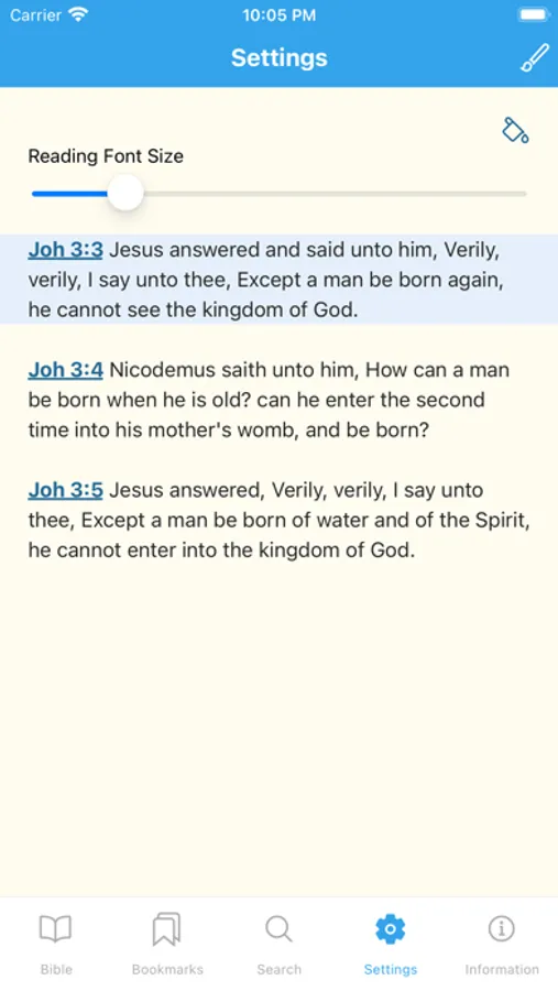 Other features that would be of benefit to you is ability to adjust Font Size of the reading text as well as background color on which you are reading the text. And that is not everything, many people like different colours, so KJV Bible application brings to you a way of customising primary color, that will affect the way design is presented to you.