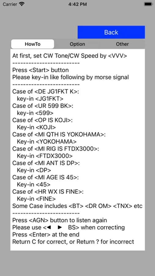 This app is a CW QSO Trainer App for CW beginner of Ham Radio.