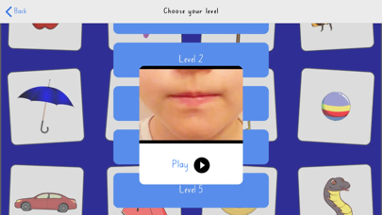 This is an important step in the game as it is important for your child to see how the mouth should look when they form a particular sound. Encourage your child to say the sound with the model on the video.