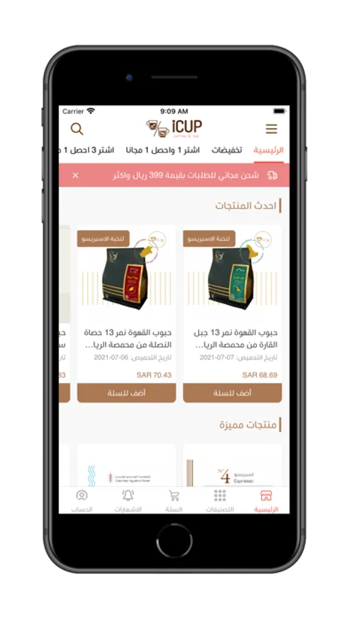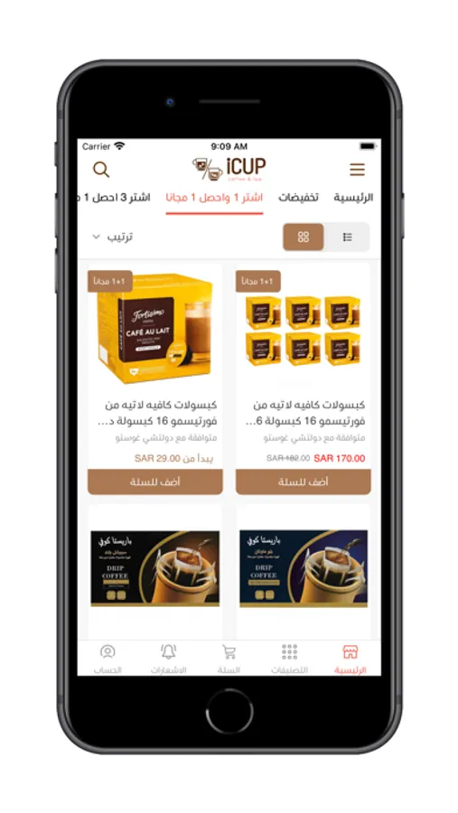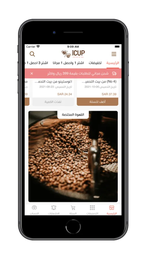 يوفر لك التطبيق خدمة الشراء لمنتجات القهوة المختصة والعربي والإسبريسو والفرنسية والتركية وافضل انواع الشاي