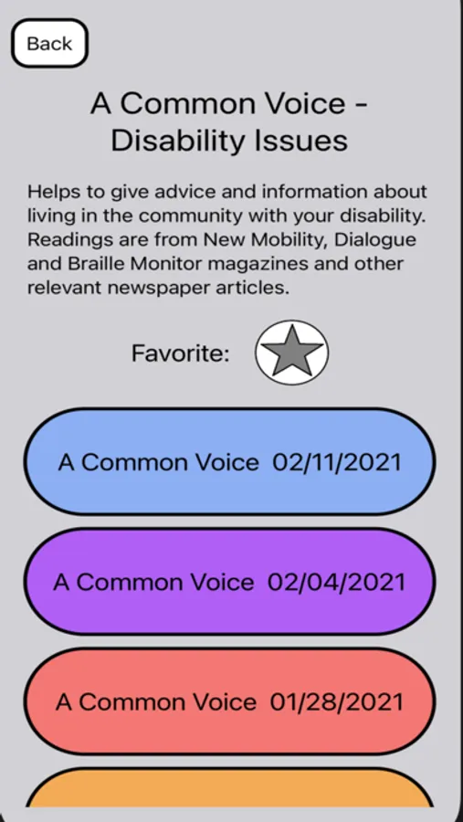 The Audio Journal app allows users to access Audio Journal's 24/7 radio reading service in Central Massachusetts. The service connects individuals with a visual impairment, or an inability to access print material, to their communities through broadcasting of local news, information, and entertainment with exclusive programs and content. The app was developed through a collaboration between Audio Journal and Worcester Polytechnic Institute.