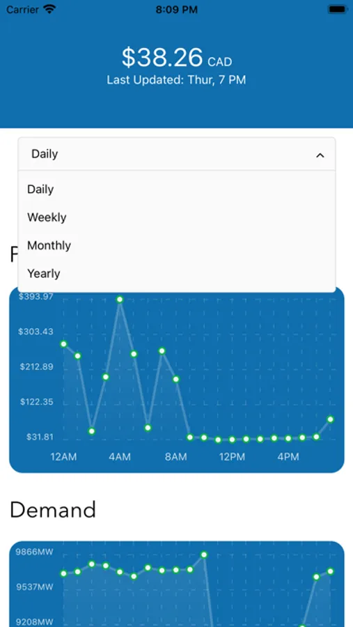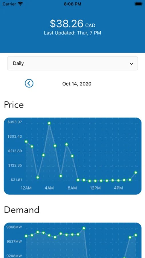 Shows the current as well as historical price and demand of power in Alberta, Canada.