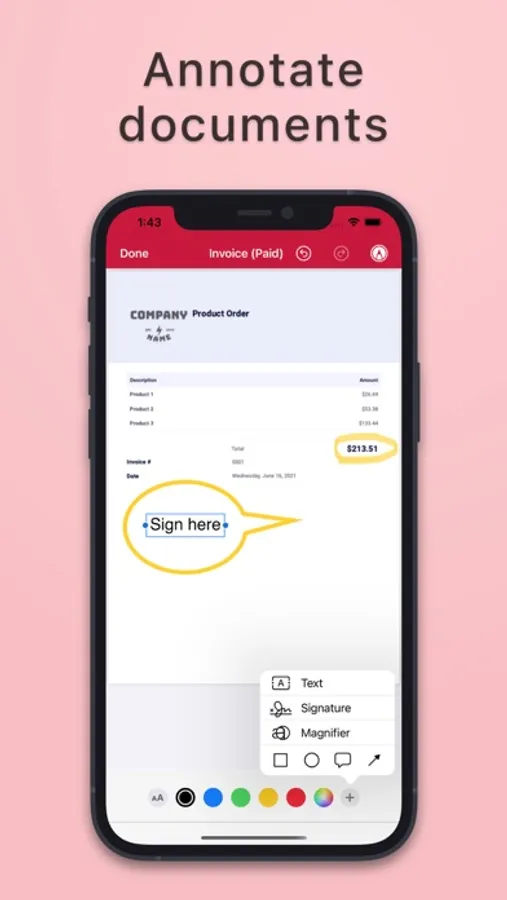 Just use your phone camera to scan and digitize all kinds of paper documents: receipts, notes, invoices, whiteboard discussions, business cards, certificates, etc.