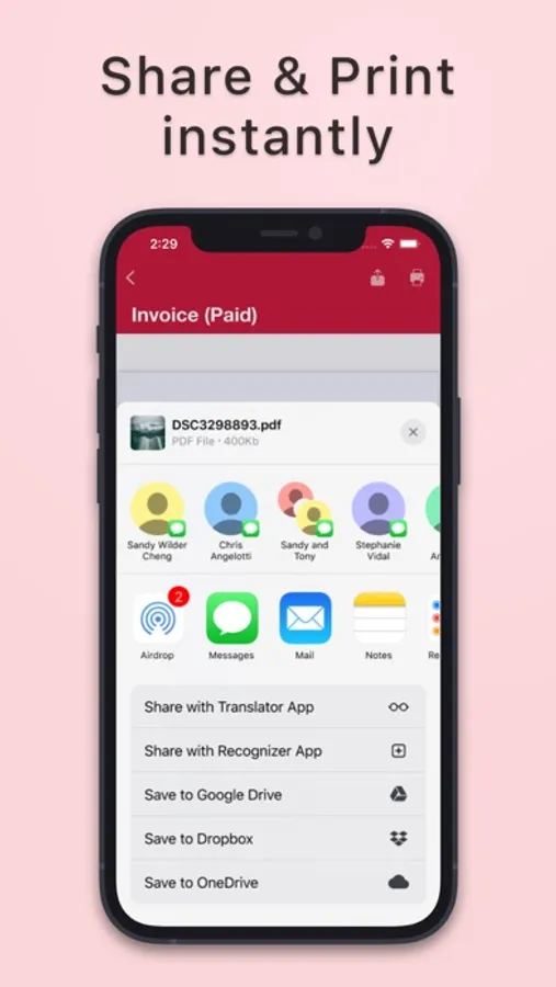 Instantly print out any documents in ScanPro with nearby printer via AirPrint