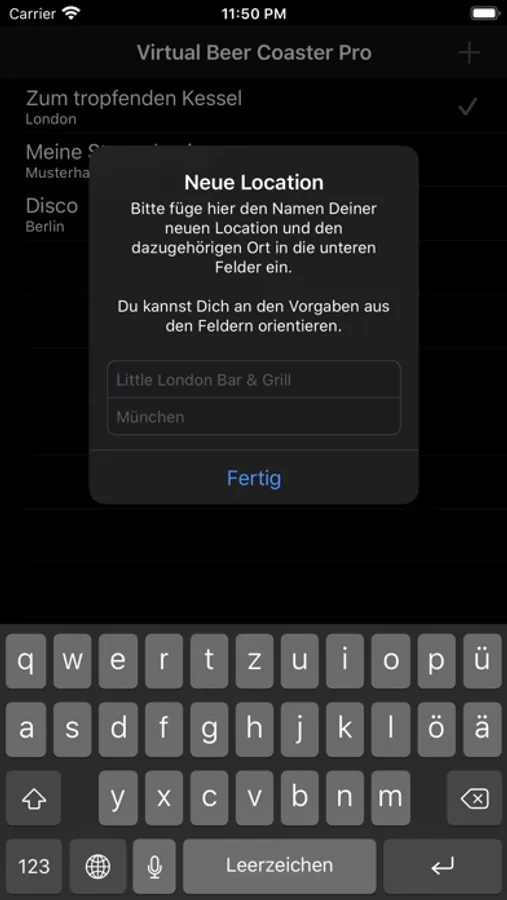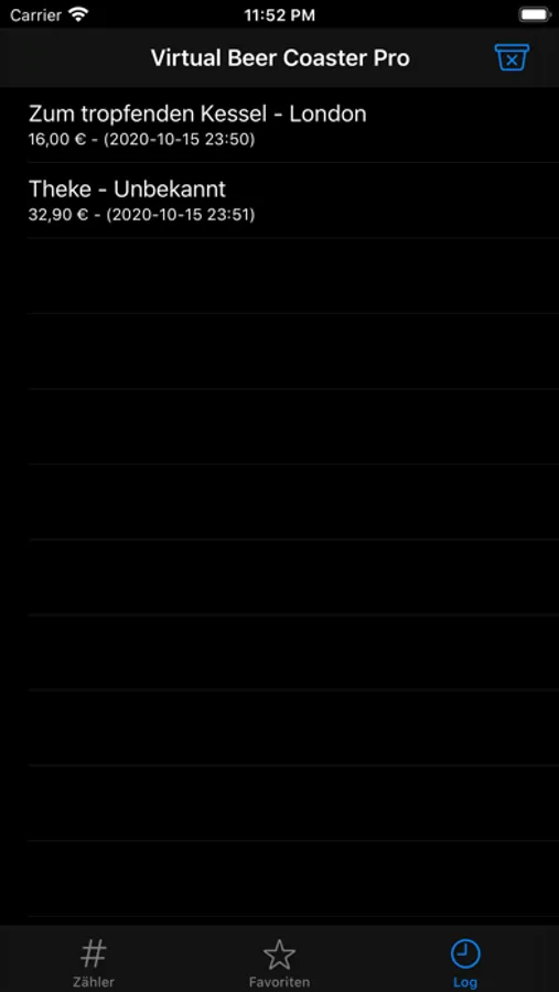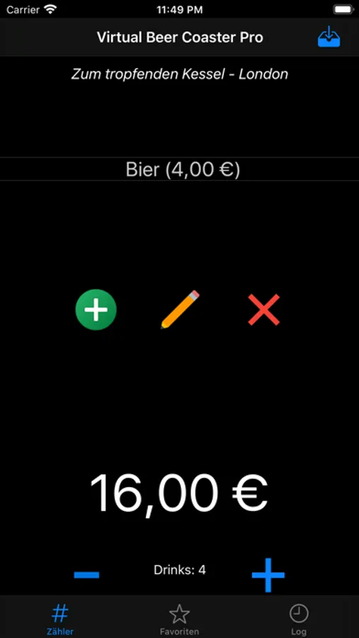 Die Pro-Version erlaubt Dir verschiedene Kneipen, Discos oder andere Lokalitäten (und deren jeweilige Getränkepreise) zu speichern. Weiterhin wurde eine Log Funktion hinzugefügt, in der alle Abende (inklusive der einzelnen Getränke und des Gesamtpreises) aufgeführt werden. So erhältst Du eine Übersicht dessen, was Du über mehrere Abende ausgegeben hast.