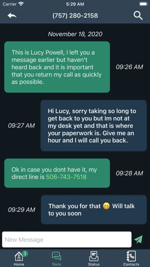- Message Management: Choose if you want to receive messages via text, email, or through the app where all messages are logged (includes filtering and archiving abilities).