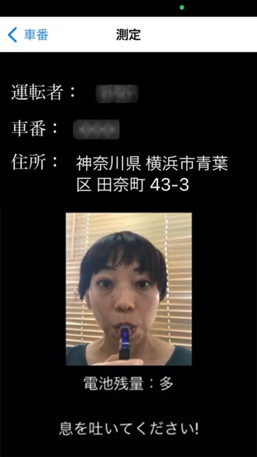 本体にわずか10秒間息を吹きかけるだけで、呼気中アルコール濃度を瞬時に測定し、その数値がBluetooth経由でアプリに転送され、その後クラウドシステムに自動で連携されます。