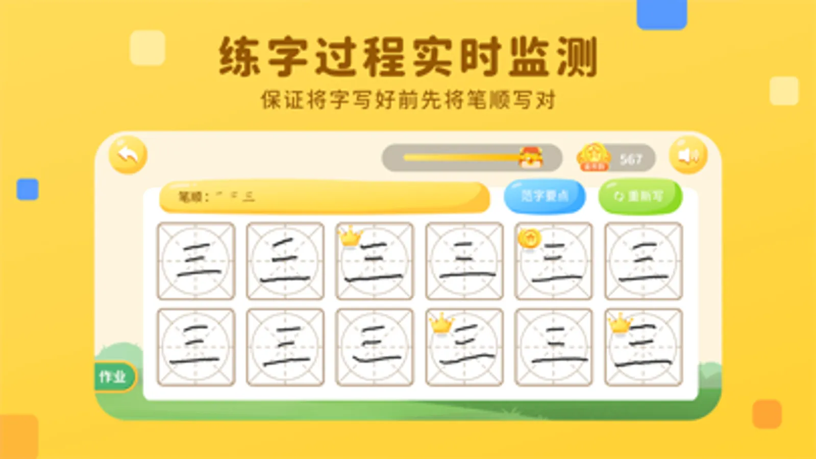 乐写字会将您写的每一个笔画实时的传输到APP上,并进行智能笔顺判断,在笔顺出现错时及时提醒您纠正,保证将字写好前先将笔顺写对