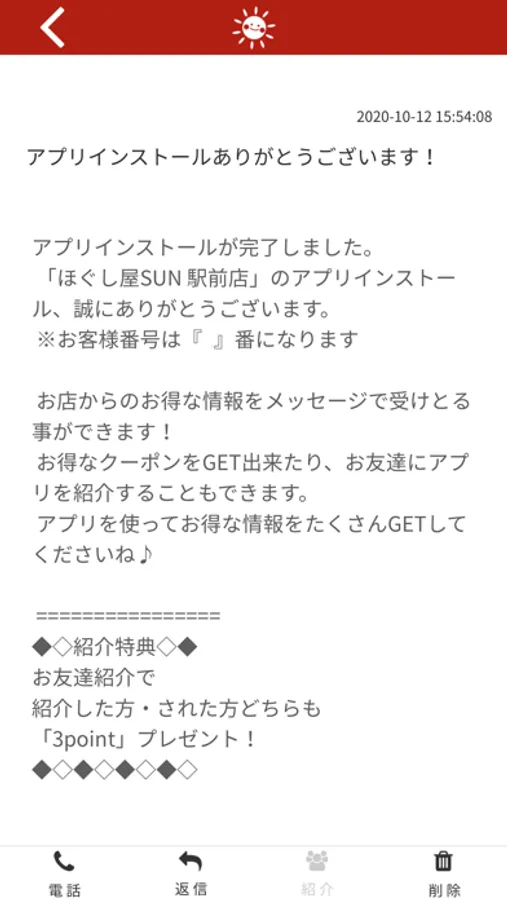 ほぐし屋SUNのアプリをSNSを通じてお友達に紹介する事ができます。