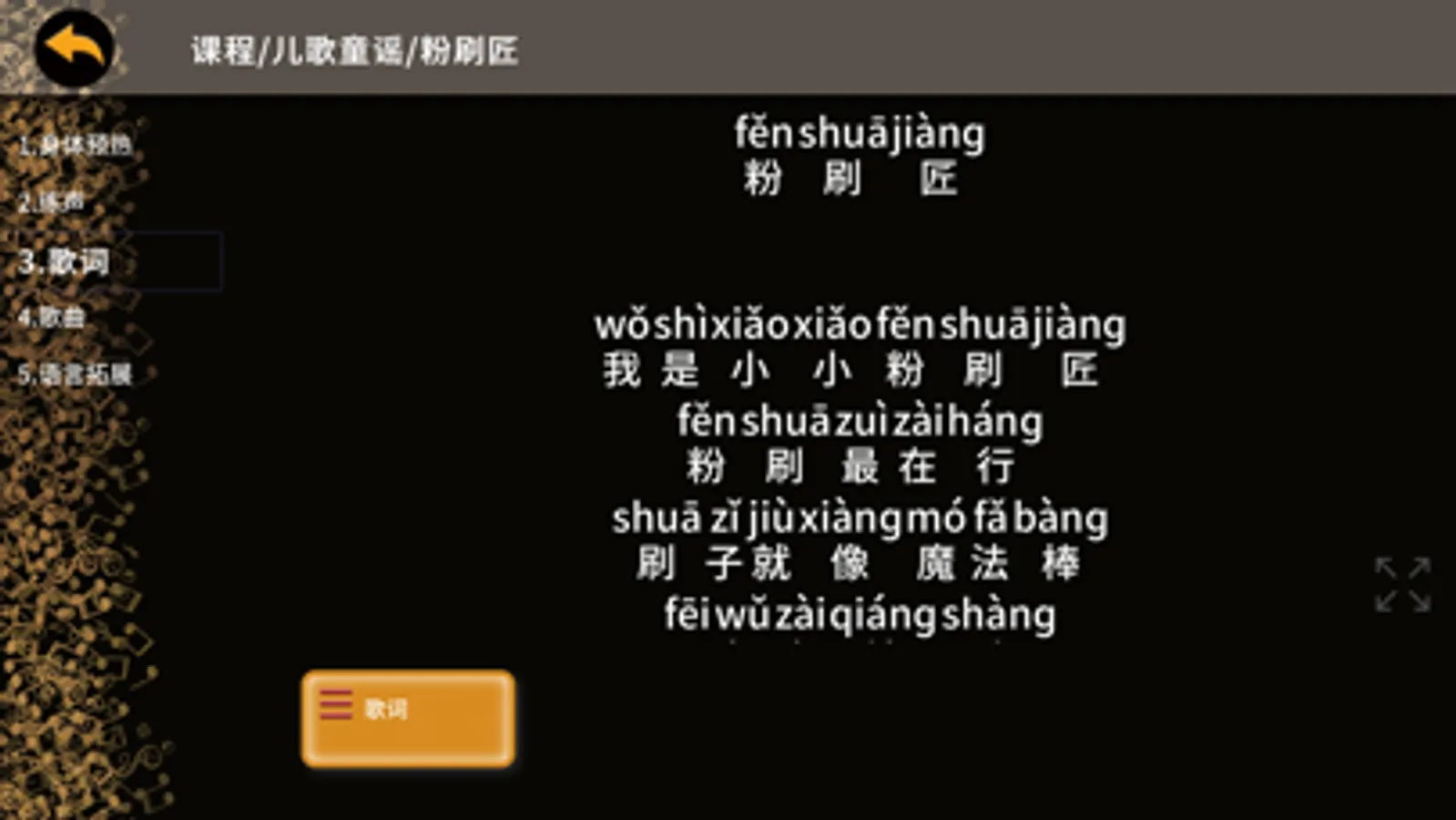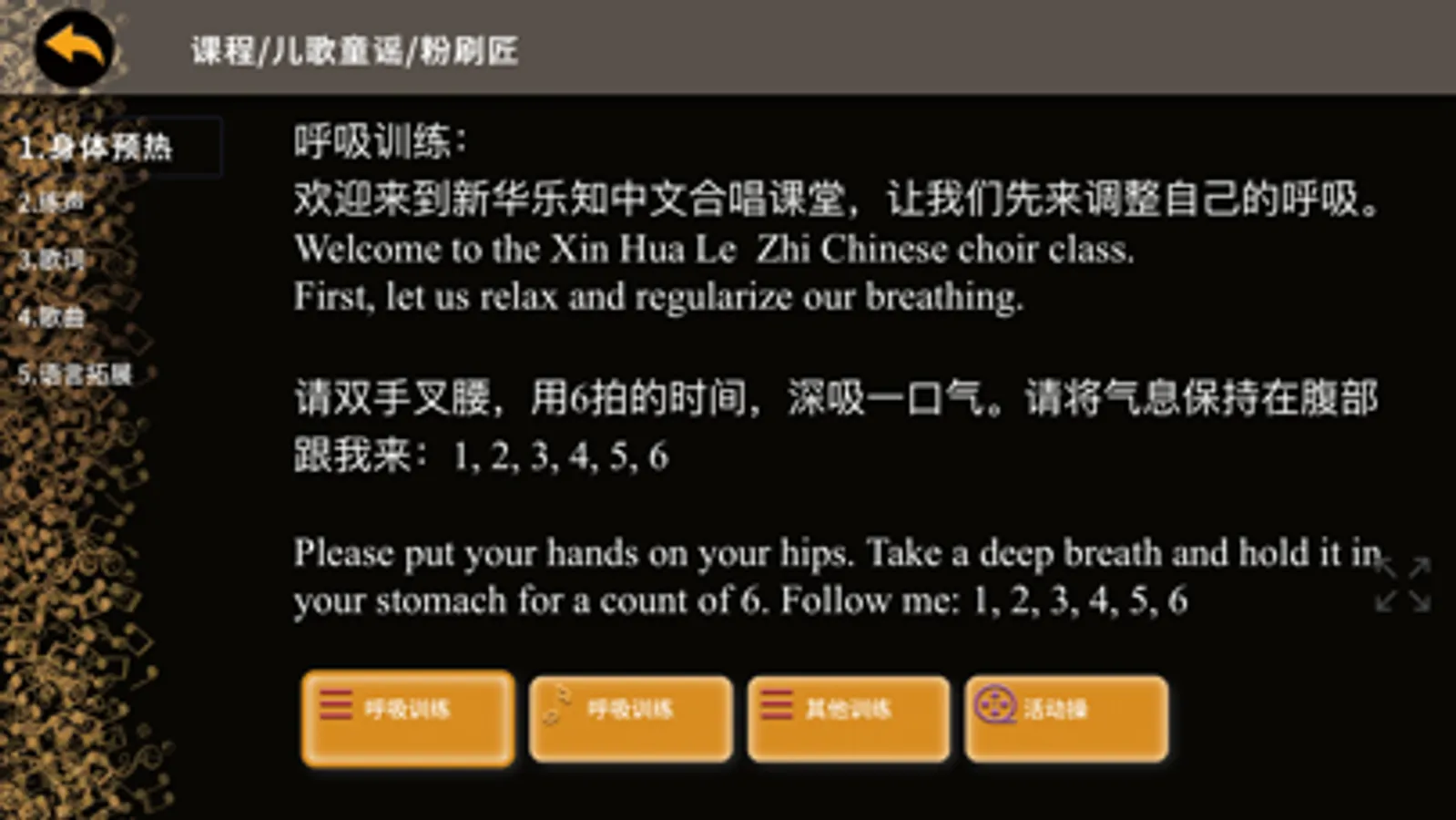一款为国际汉语教师提供中文歌曲教学辅助,包含中文教学辅助歌曲、演出赛事合唱曲目和教师基本功训练,软件内容适用于教师面对的学生群体包含国内外儿童、青少年和成年人,涉及童谣、儿歌、合唱、音乐基础知识等内容,方便教与学。