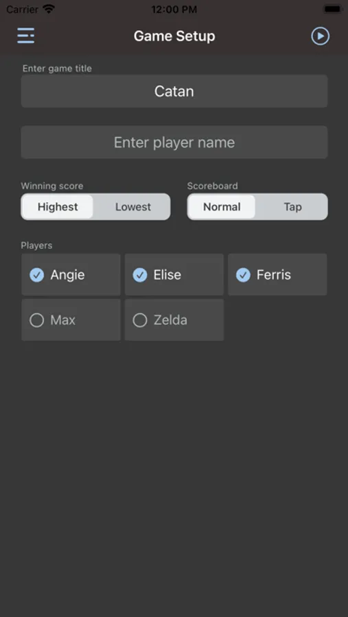 Set your game, add your players, select play and you're ready. If you need more rows on your scoreboard, select Add Row to increase the amount of rows/rounds in your game.
