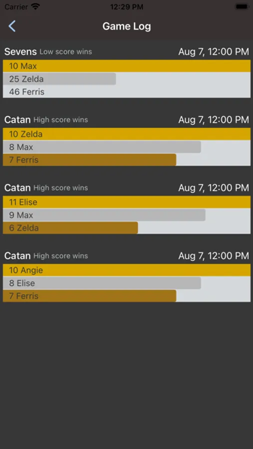 Save your game on your device, then view the Game Log for a history of all games or view the Statistics to see data for each type of game played.