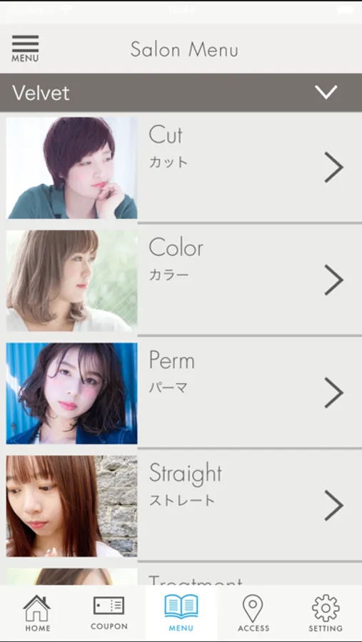 気になるサロンメニューや価格を、アプリから簡単にご確認いただけます。
