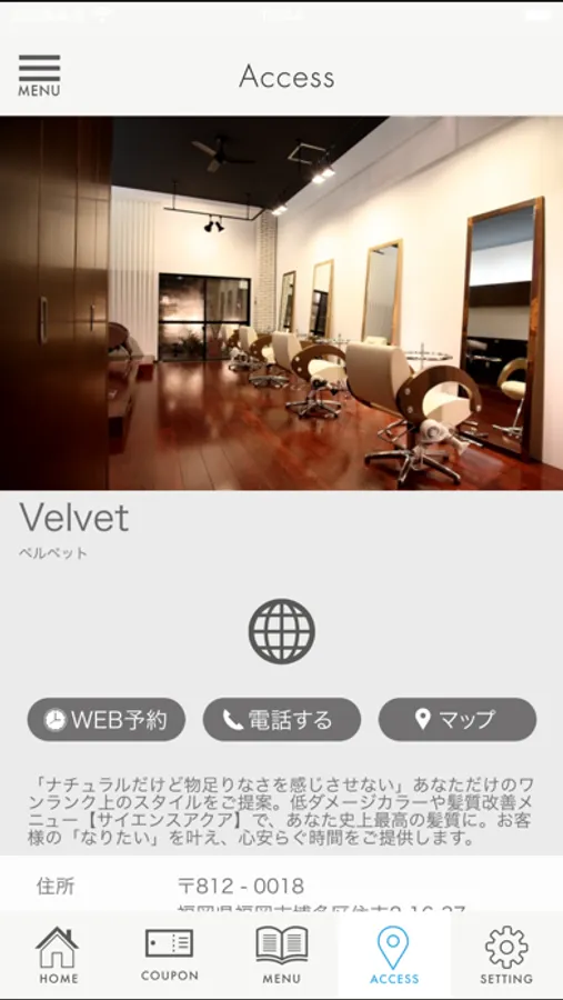 メニューやヘアスタイル、ご希望のお時間帯のチェック・ご予約などが可能です。