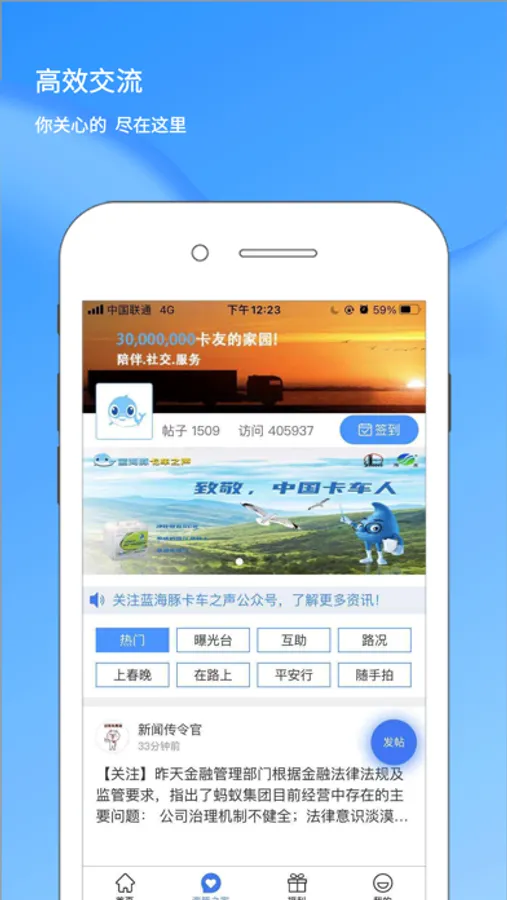 蓝海豚之声,依托广电传统媒体优势,以网络电台、APP为核心,车联网、移动广播等新媒体传播矩阵同步传播,声、屏、网联动,线上线下融合,实现传播效能叠加、放大和用户的立体响应。围绕“陪伴、社交、服务”,为3000万卡车人提供社会关爱、信息娱乐、 社交互动、职业营运等服务。