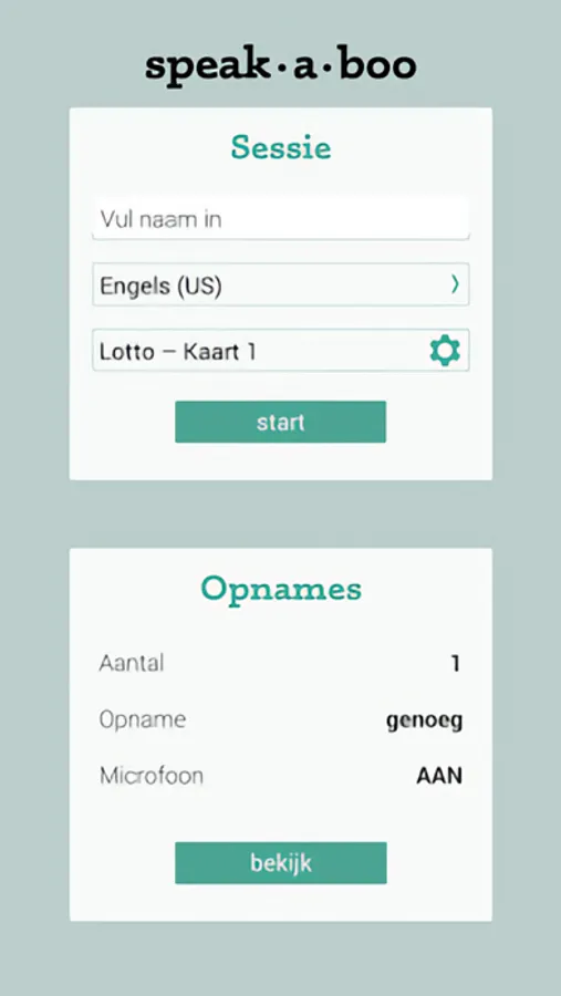 Speakaboo is an articulation screener designed to help SLP's assess speech development of a multilingual child in its native language. Using small interactive games, Speakaboo helps therapists elicit target words which are automatically recorded. The therapist can access these recordings after the test to review them, score the results, and compare them to the pronunciation of a native speaker. In the face of a language barrier, showing the child's parents a comparison of the two recordings makes it easier to explain a diagnosis. The SLT can also use the app to play the recorded audio of their child back. This often results in a better understanding of the diagnosis by parents.