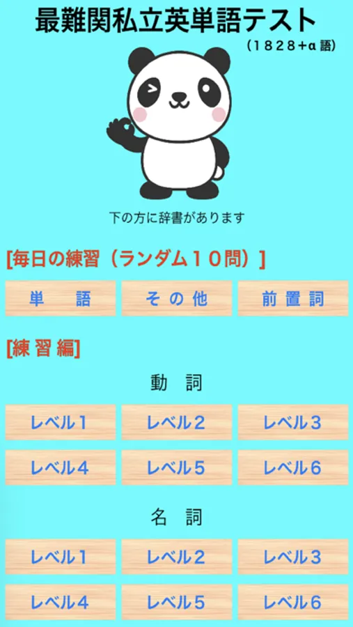 毎日の練習として、アプリ内にある全ての問題から10問ランダムに選ばれたものも用意いたしました。1分程度で終わると思いますので、時間のある時に気軽に単語や熟語を覚えているか確認できます。