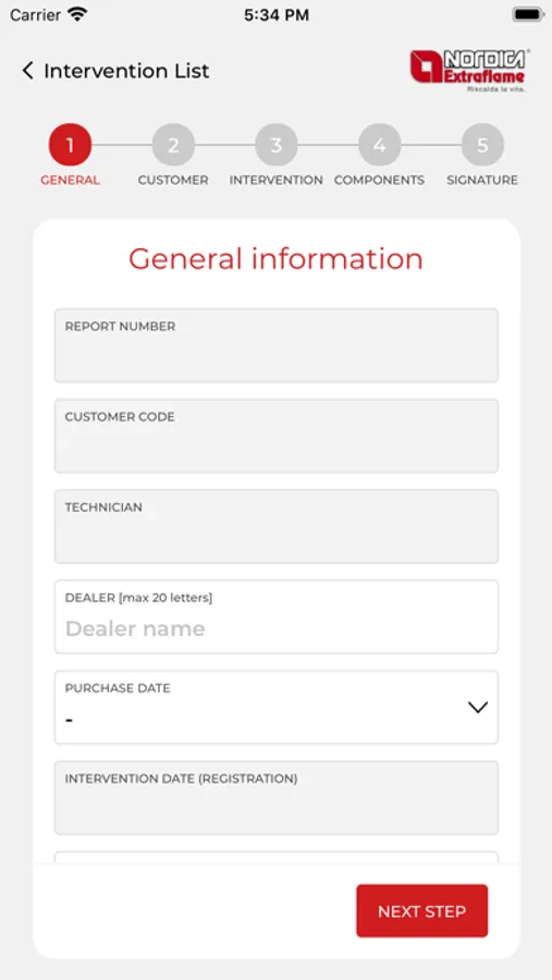 The La Nordica-Extraflame Service Report App allows you to enter intervention reports electronically.
